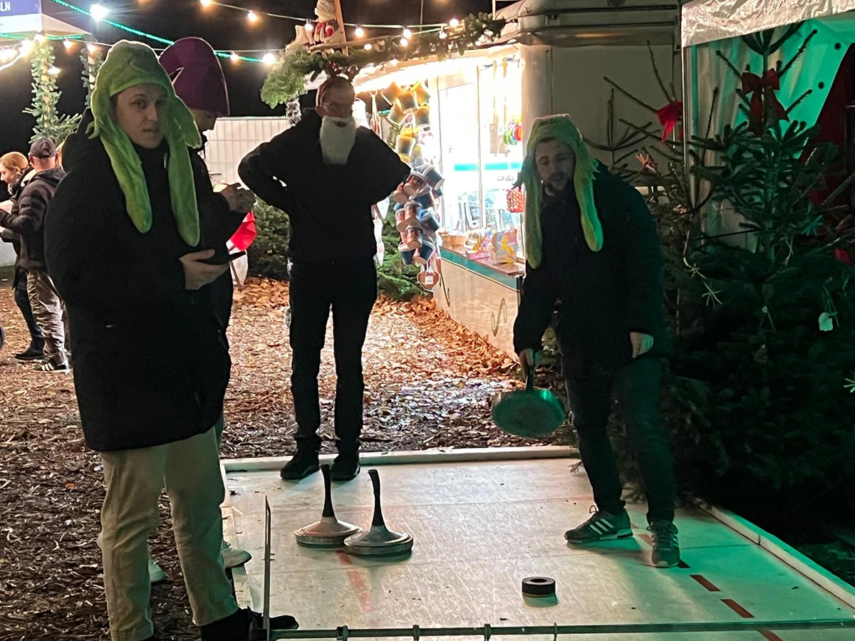 Trotz diverser krankheitsbedingter Ausfälle gelang es, fünf Teams zum Eisstockschießen bei der diesjährigen Weihnachtsfeier in der Alm in Datteln zusammenzubekommen.